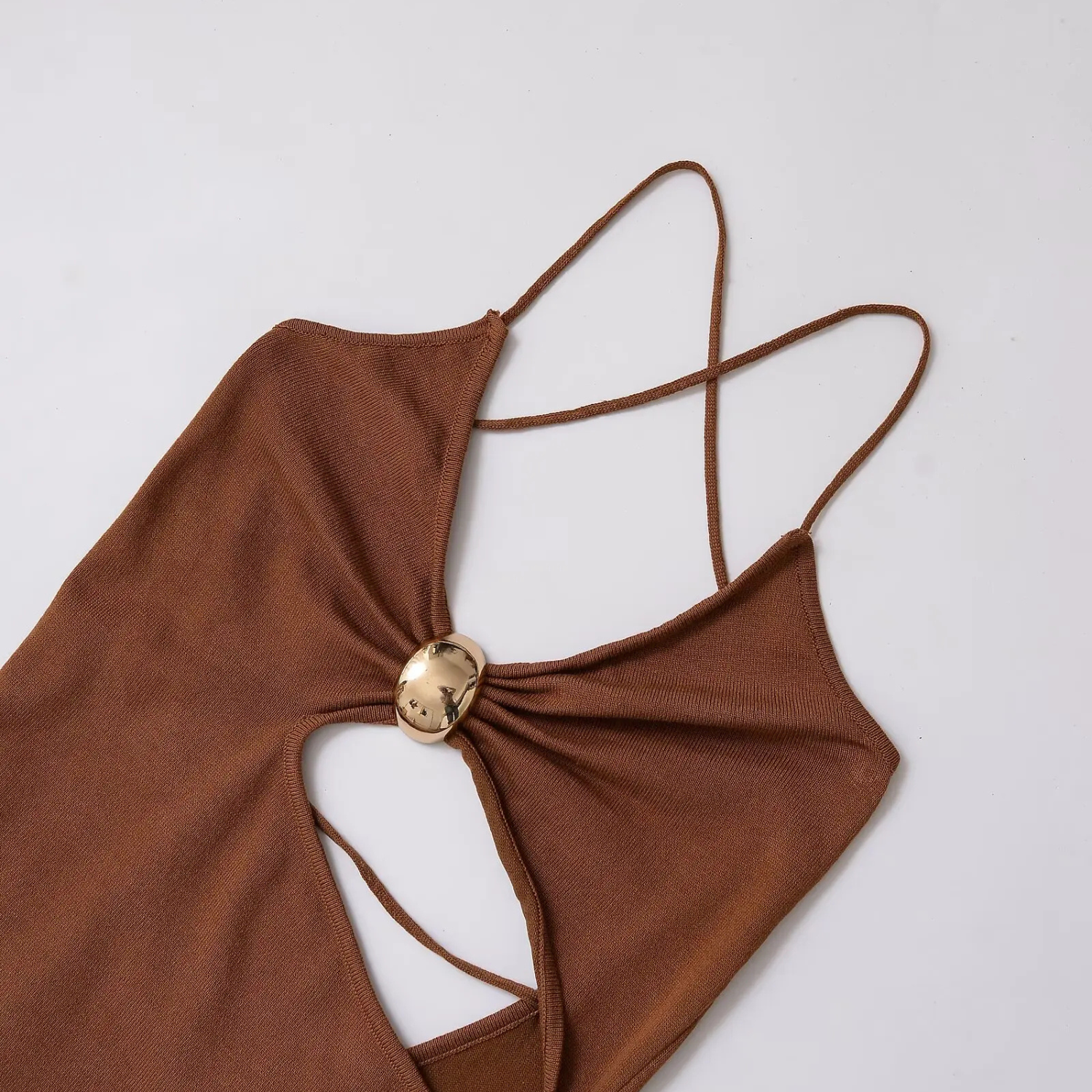 Nina | Ażurowa Dzianinowa Sukienka na Ramiączkach Bez Rękawów