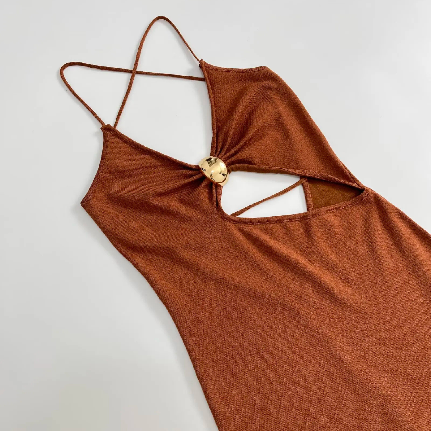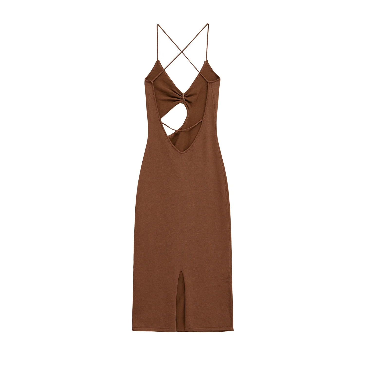 Sukienka Nina to letnia elegancja w nowoczesnym wydaniu – bezrękawnikowy fason z delikatnej dzianiny, ozdobiony stylowymi ażurowymi detalami i cienkimi ramiączkami. Lekka i kobieca, doskonale sprawdzi się na wakacyjne wyjazdy, lunch na tarasie czy romantyczne spacery o zachodzie słońca.