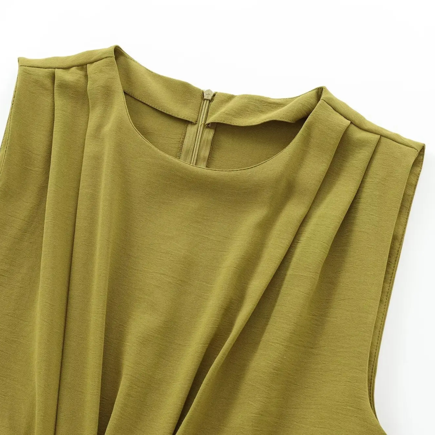 Ania | Sukienka Maxi Bez Rękawów z Ozdobną Klamrą