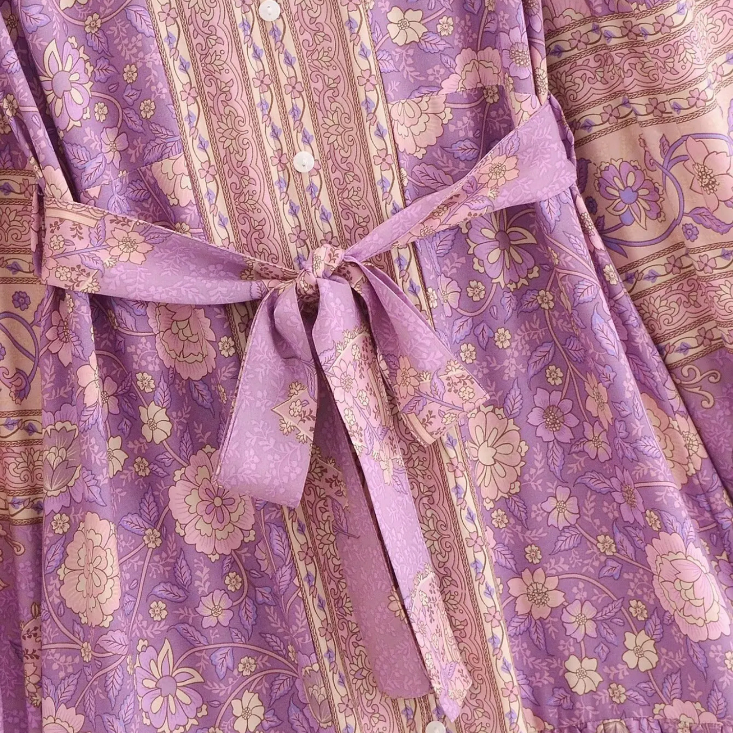 Elka | Retro Długa Sukienka z Paskiem, Dekoltem w S i Guzikami