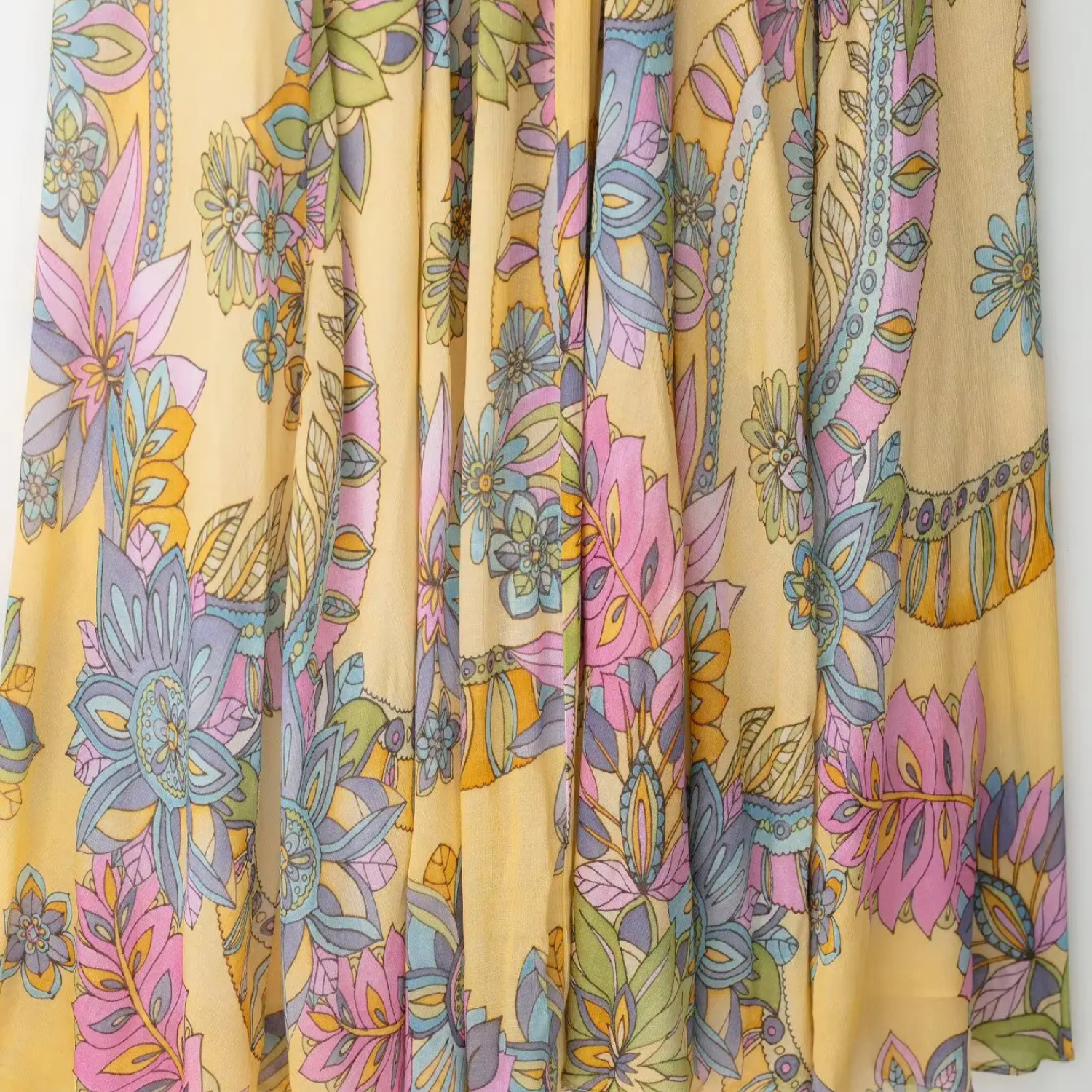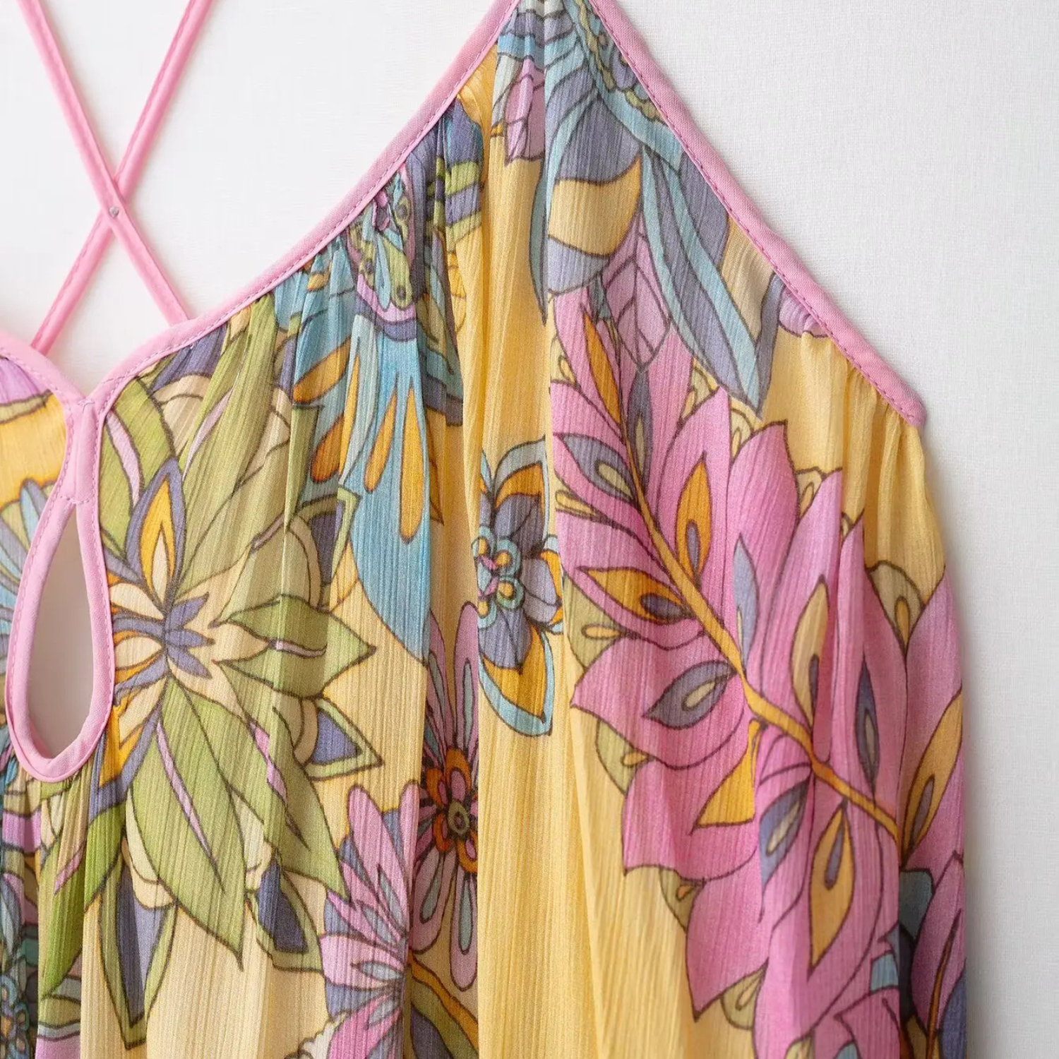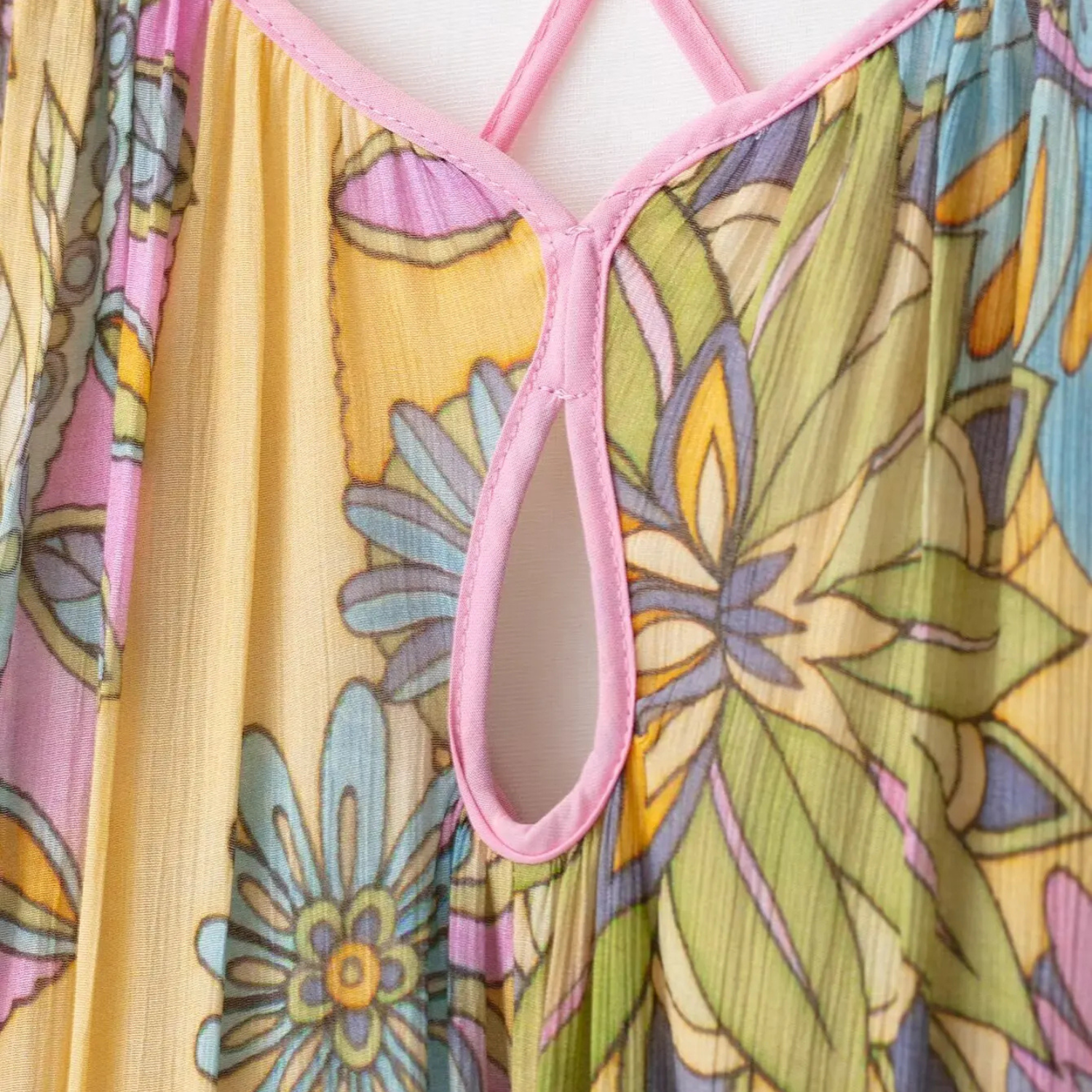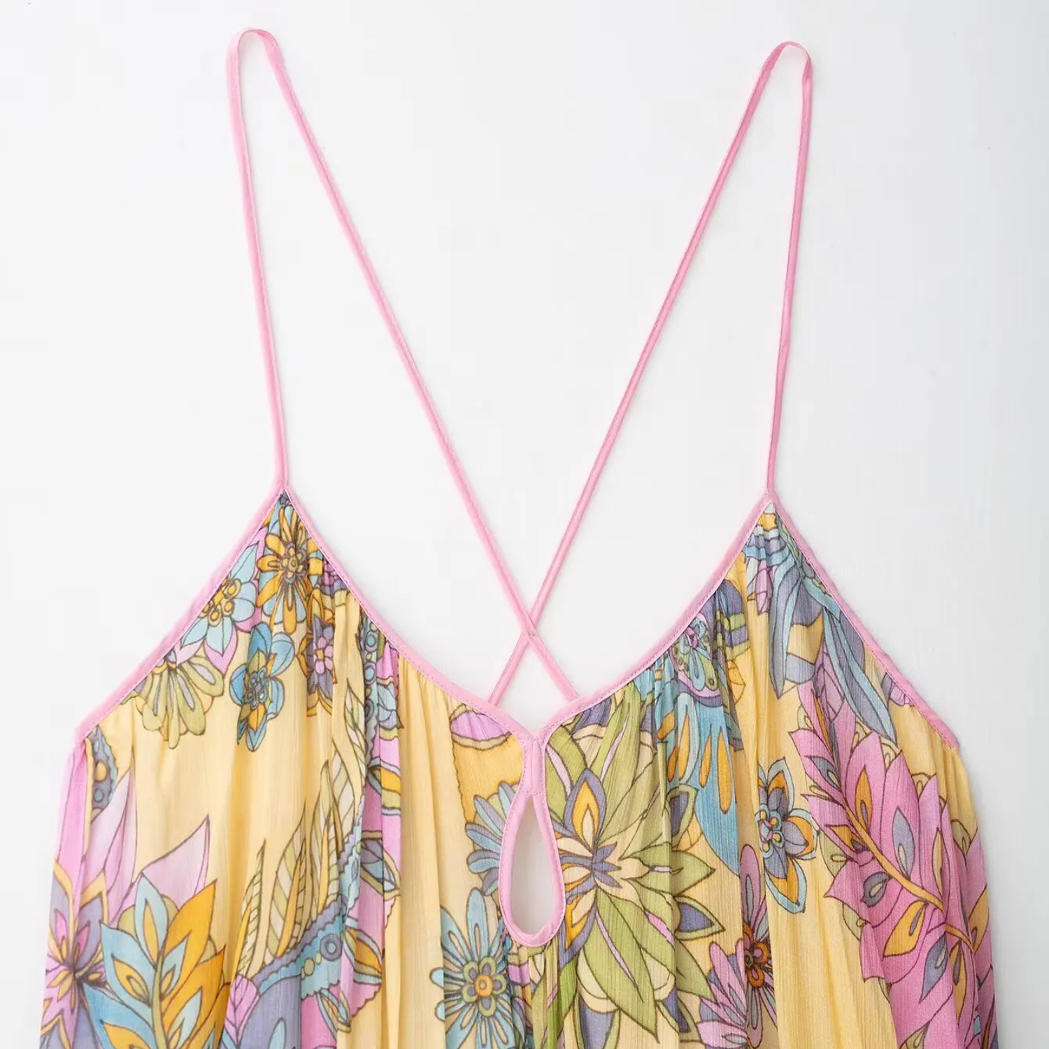 Sukienka Ewa zachwyca kobiecym krojem – odsłonięte plecy, lekki, zwiewny fason i przyciągający wzrok nadruk tworzą wyjątkową całość. Cienkie ramiączka dodają subtelności, czyniąc ją idealnym wyborem na letnie wieczory, kolacje na plaży czy chwile, w których chcesz wyglądać promiennie i z klasą.