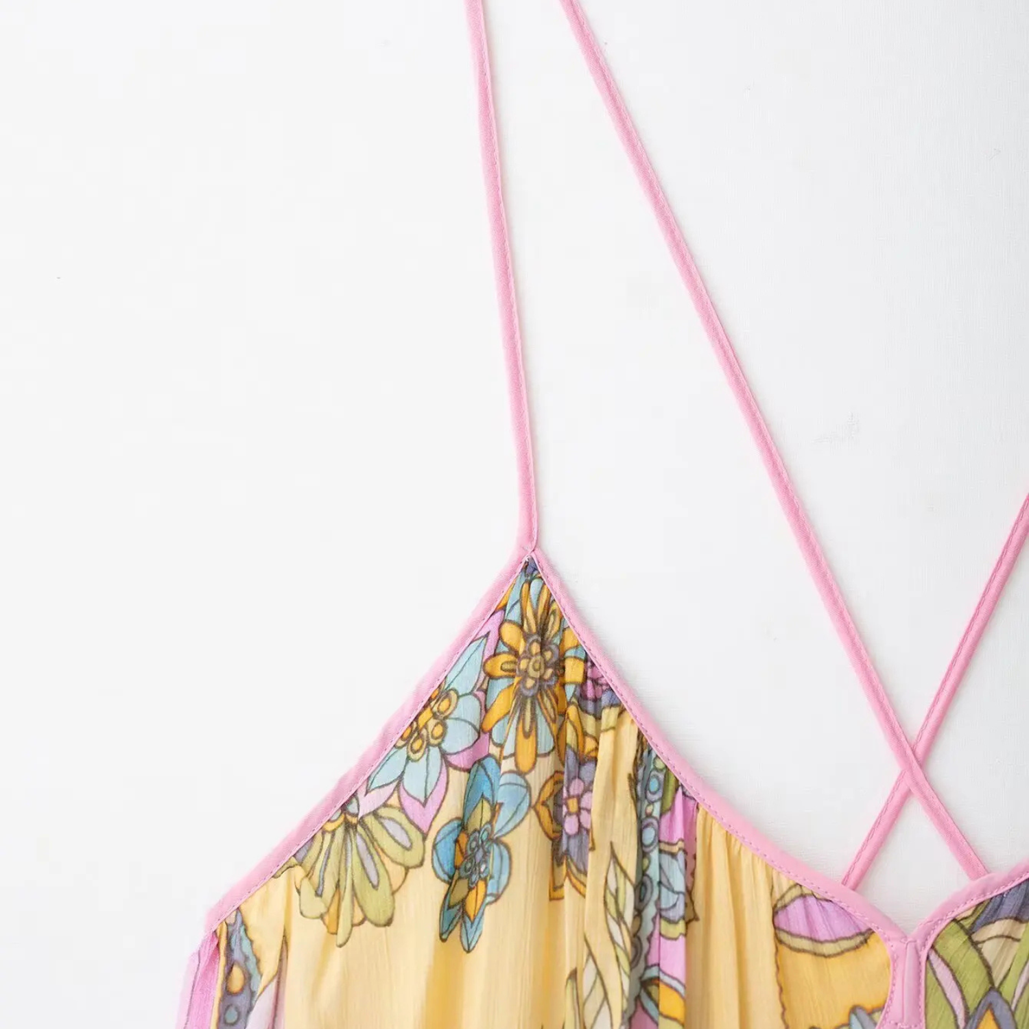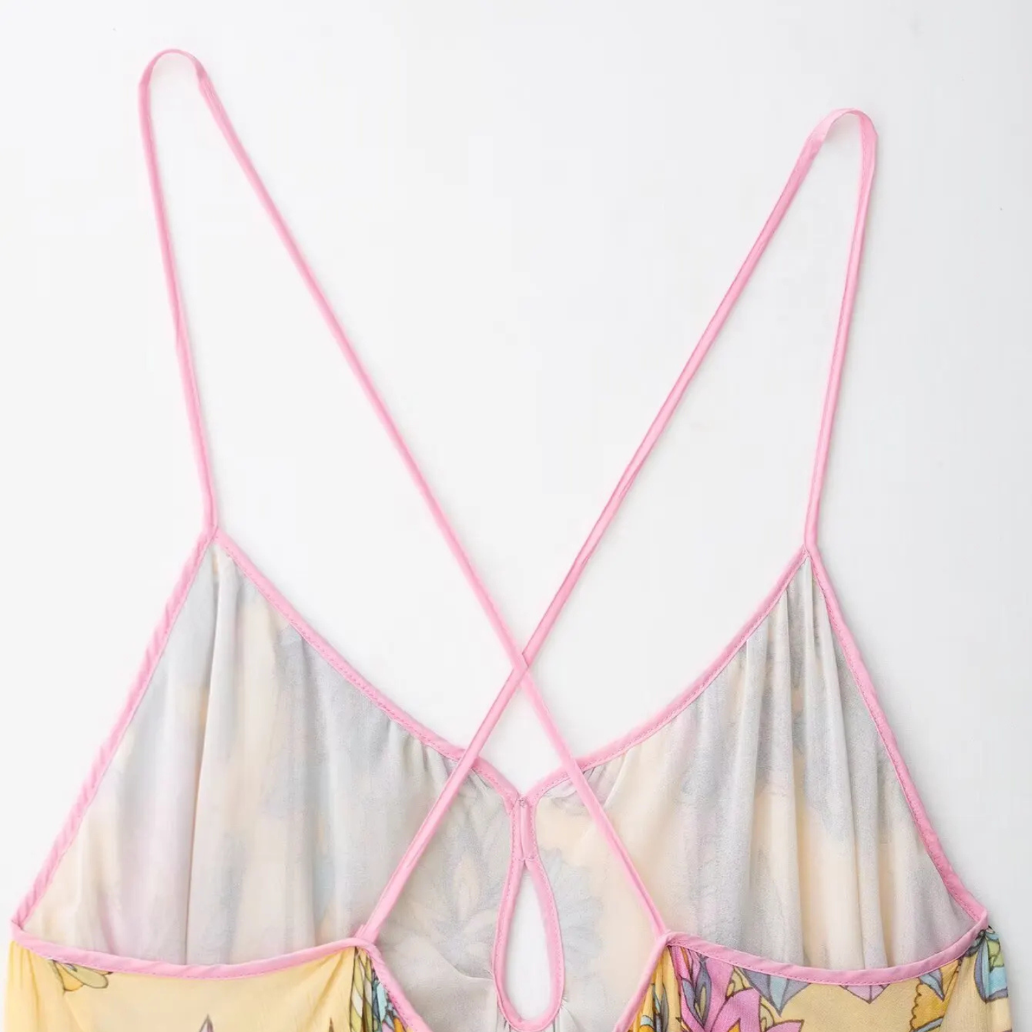 Ewa | Długa Sukienka na Ramiączkach z Odkrytymi Plecami i Wzorem
