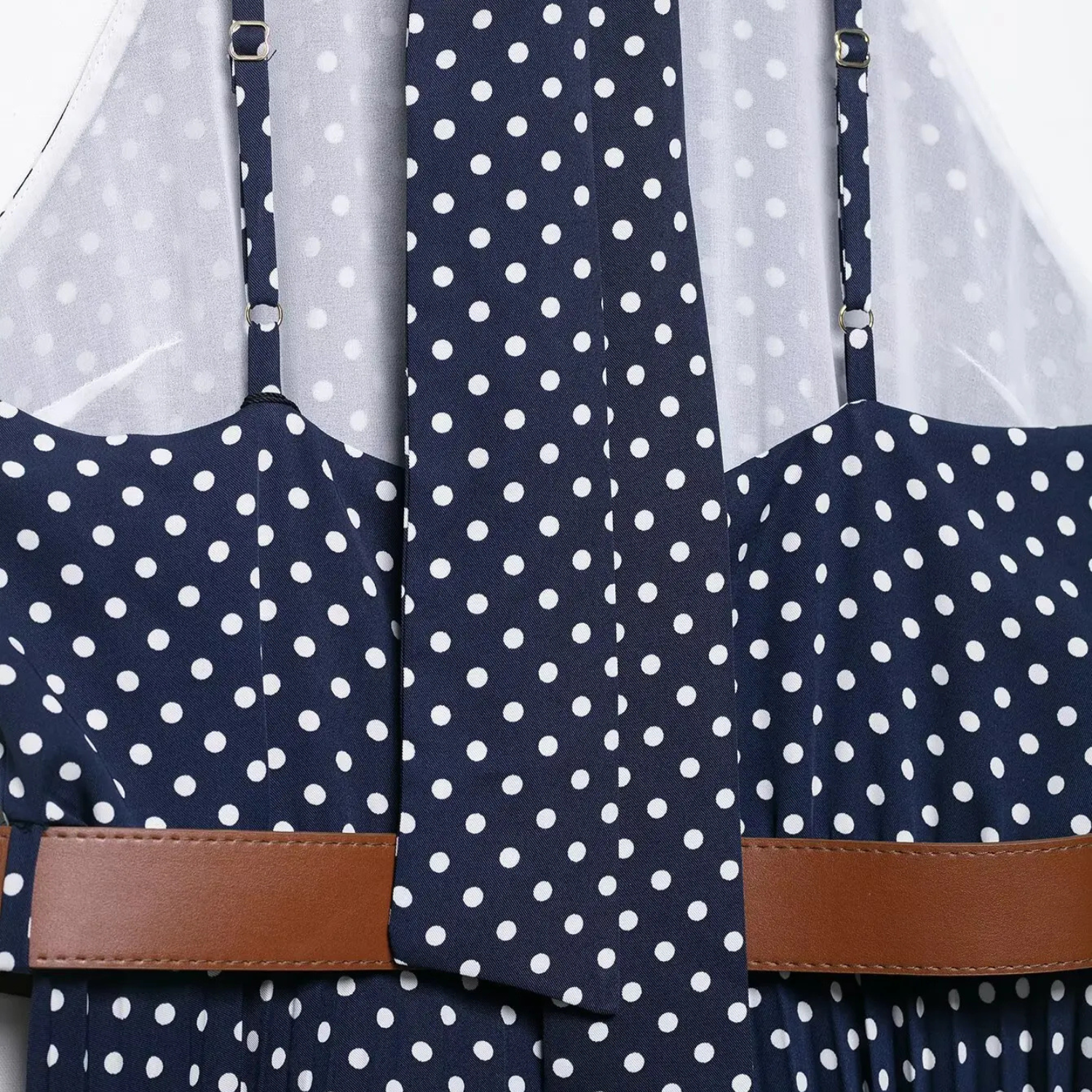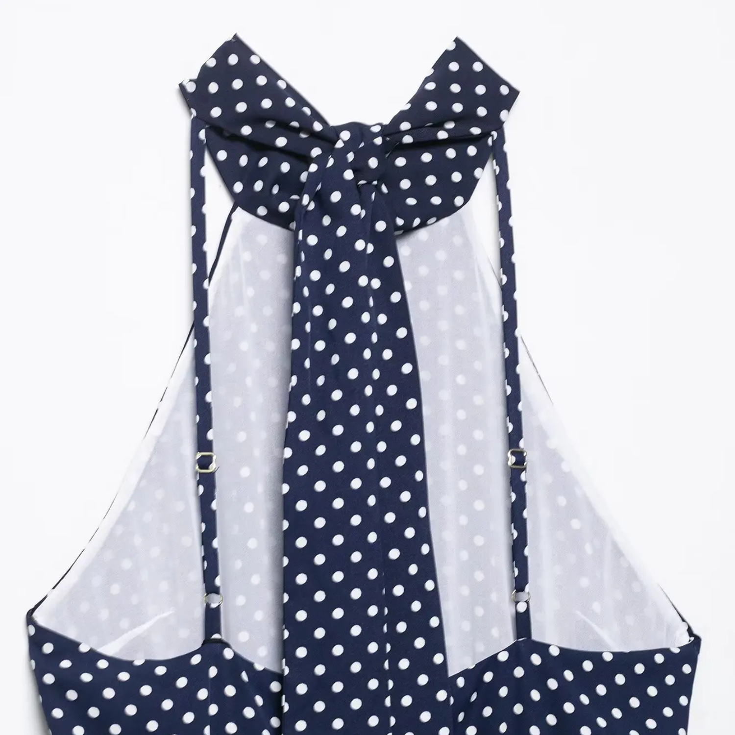 Sukienka Zara łączy retro urok z nowoczesną elegancją – wiązanie na szyi, klasyczny wzór w groszki i pasek podkreślający talię tworzą harmonijną całość. Bez rękawów, o długości midi, to uniwersalny wybór na przyjęcia w ogrodzie, weekendowe spacery lub słoneczne dni pełne stylu.
